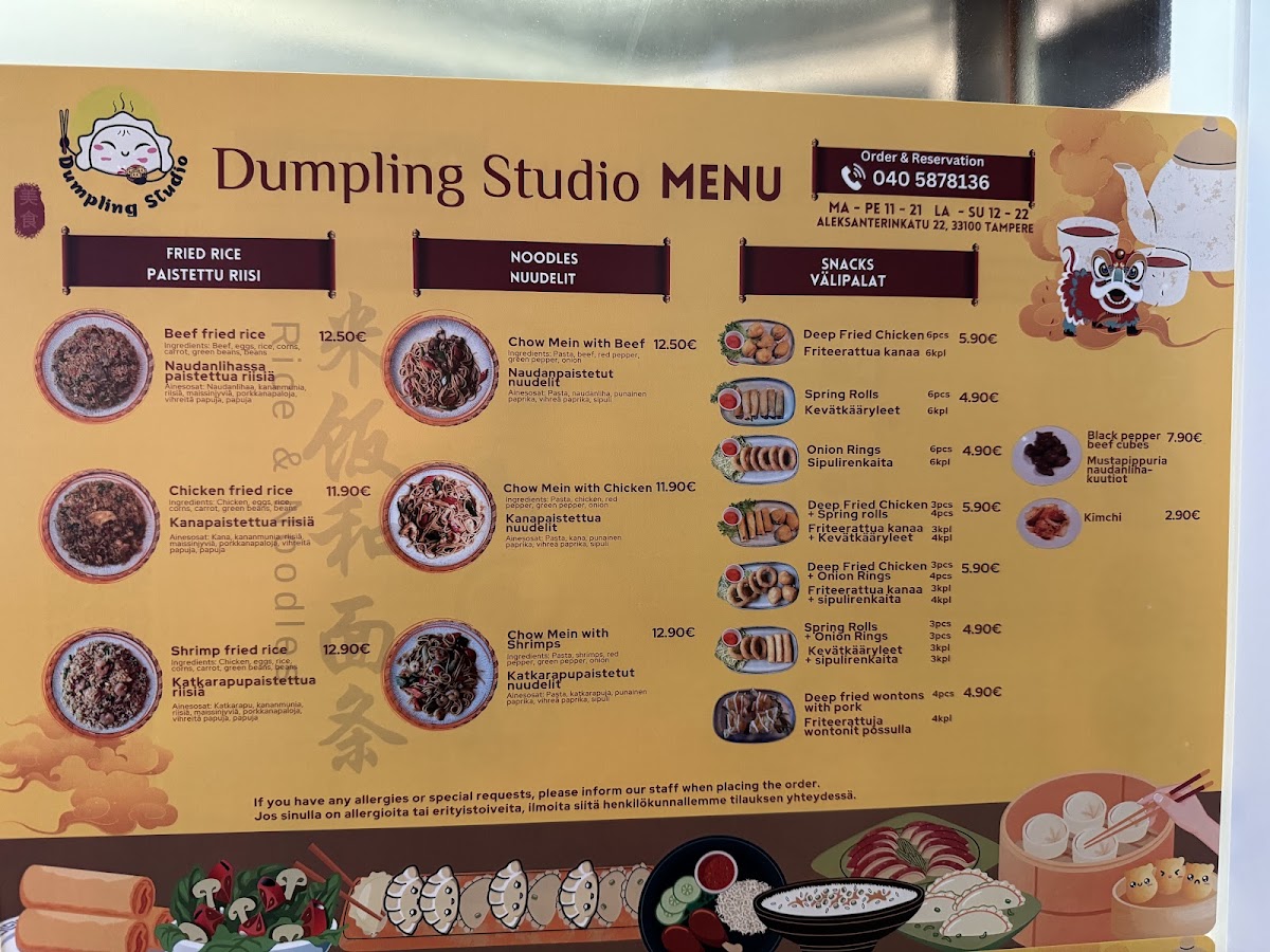 In conclusion, Dumpling Studio stands out not just for its delectable menu but also for its passion for authentic, handmade cuisine. Whether you're a local or just passing through Tampere, this charming eatery promises a satisfying experience that will keep you coming back for more delicious discoveries.